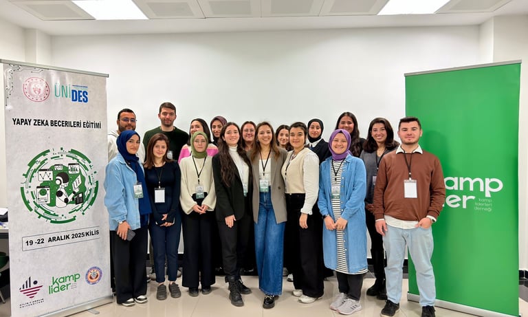 Yapay Zeka Becerileri Eğitimi, gönüllü kamp liderlerinin dijital okuryazarlık ve yapay zekâ temelli becerilerini geliştirmek amacıyla 19-22 Aralık 2025 tarihlerinde Kilis'te gerçekleştirildi.